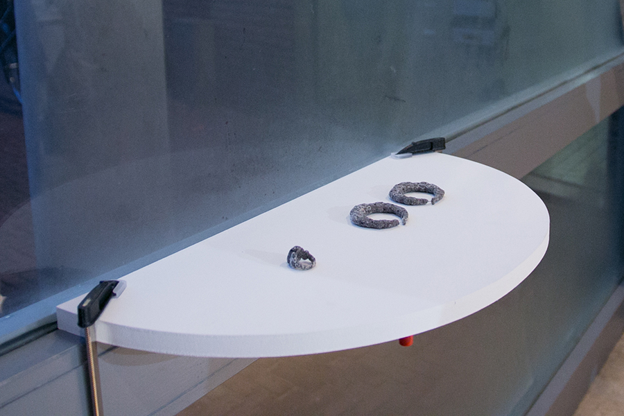 Die Ausstellung „Paravent“ lädt ein, anhand einiger entschiedener Positionen der Klasse, Themenfelder des Fachbereichs Schmuck und Gerät, zu diskutieren. „Paravent“ als Metapher, um Schmuck und Artefakte auf der Grenze von privatem und öffentlichem Raum zu erfahren. Der Prozess der Recherche, als wichtiger Bestandteil der künstlerischen Haltung der Klasse, manifestiert sich in den Arbeiten, beziehungsweise Ausstellungsstücken. Sei es durch die historische Aufladung verwendeter Materialien, einer medientheoretischen Auseinandersetzung, oder dem Thematisieren zeitgenössischer Bewegungen. Auf der Schwelle zwischen physischem und sozialem Körper, sind narrative Strukturen und vielfältige Referenzen zu entdecken. Schicht für Schicht.