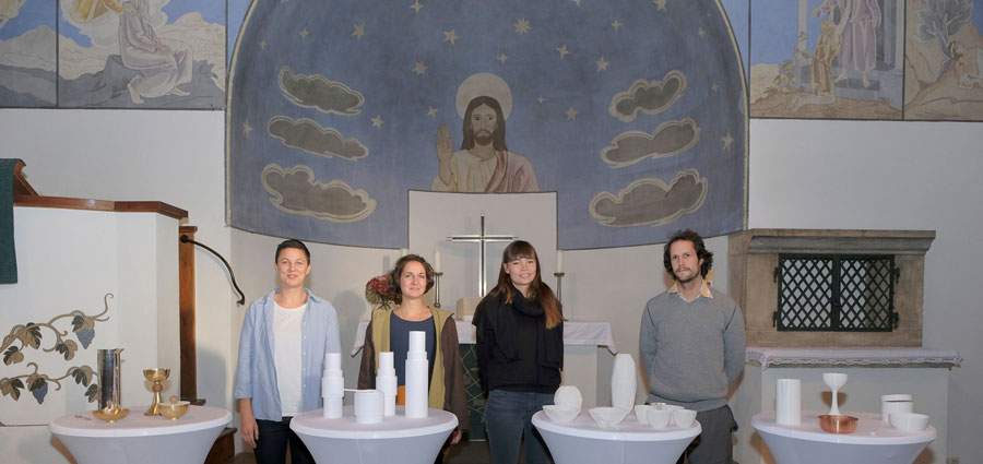 Die Evangelisch-Lutherische Christuskirche in Gauting, lud die Klasse der Akademie der Bildenden Künste in Nürnberg für Freie Kunst / Gold- und Silberschmieden ein, ein neues Abendmahlsgerät entstehen zu lassen.